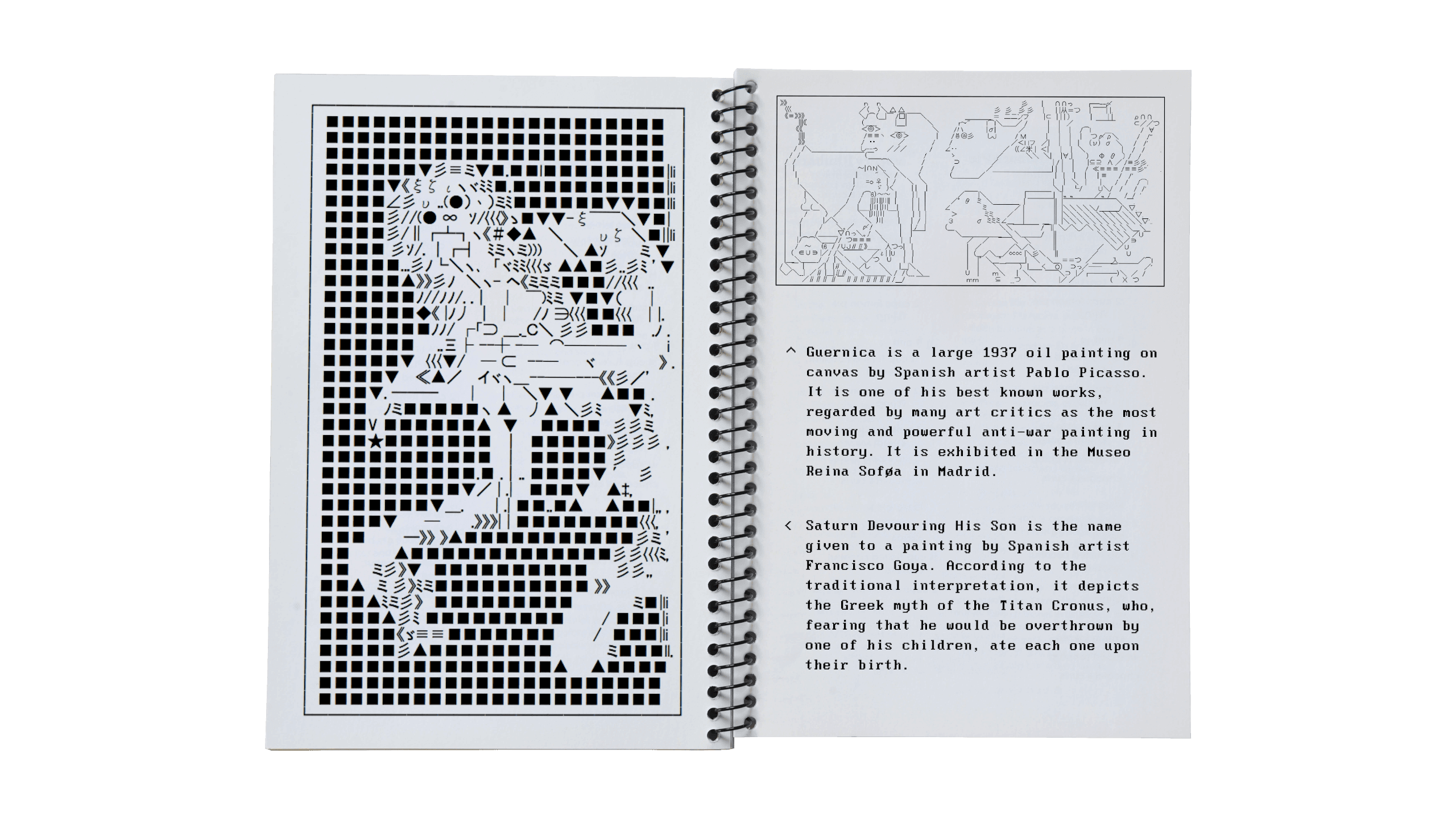 This project is titled under the generalized ASCII text art definition, and it should be noted that individual pieces are made of ASCII, ANSI, and other related text art disciplines.