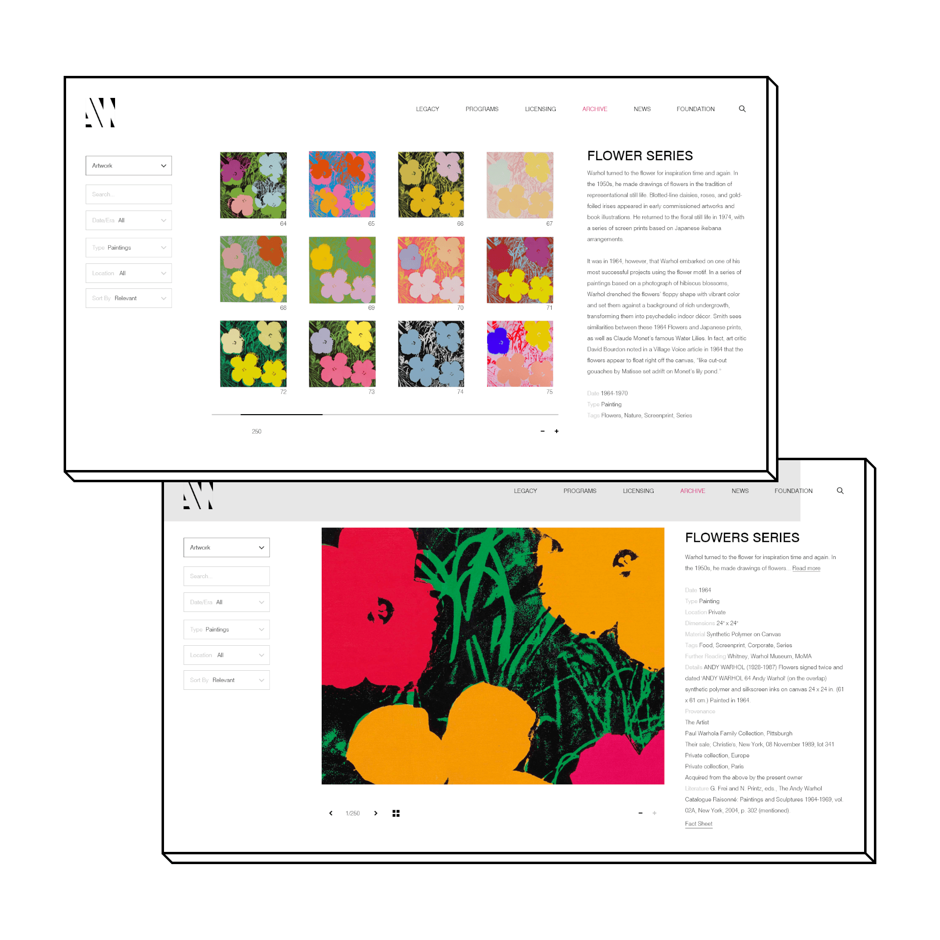 A new digital identity & design system for the king of pop (art)’s foundation, the Andy Warhol Foundation for the Visual Arts. This was an opportunity to explore innovative solutions for challenges, such as creating a system for online cataloguing and viewing of pieces, establishing an identity that stays true to the artist’s work, and how to stay consistent with the goals of in the artist’s & foundation’s legacy in the digital age.